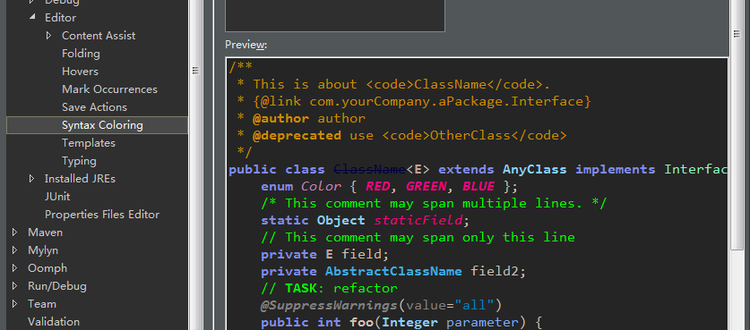 Eclipse 导入 导出 字体颜色 字号 等设置 我自己配置了一套Java字体颜色,如图,但是在换workspace,或者其他eclipse的时候,字体颜色又要重设一次,实在麻烦。 百度 Eclipse 字体颜色导出,有说通过File–>Export–>General/Preference–>选择路径,即可导出,然而这种方法没有用,导出的.epf文件,在导入到其他eclipse之后,并不能带入字体颜色。实际上,eclips...