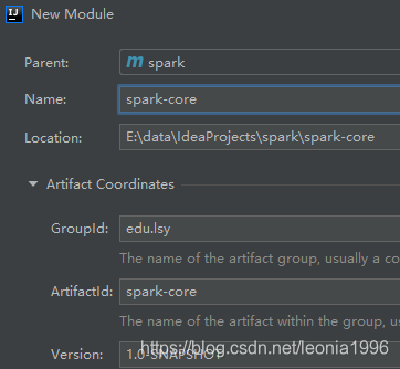 注意:第三层级创建时注意location,手动更改为spark-core下面