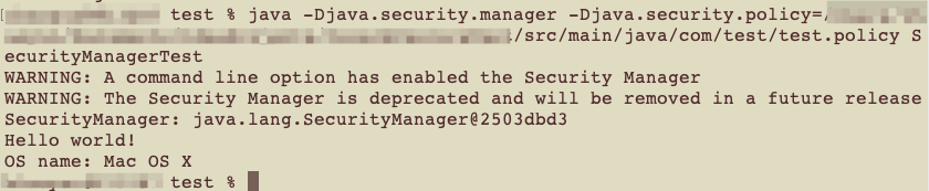 System.out.println("SecurityManager: " + System.getSecurityManager());
