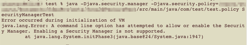 因为在Java17特性中被标注为Deprecated,因此打印了WARNING,并打印了SecurityManager,但读文件没有做授权,抛出了AccessControlException异常。
