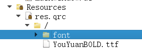 (1)在资源文件中添加字体文件,如YouYuanBOLD.ttf