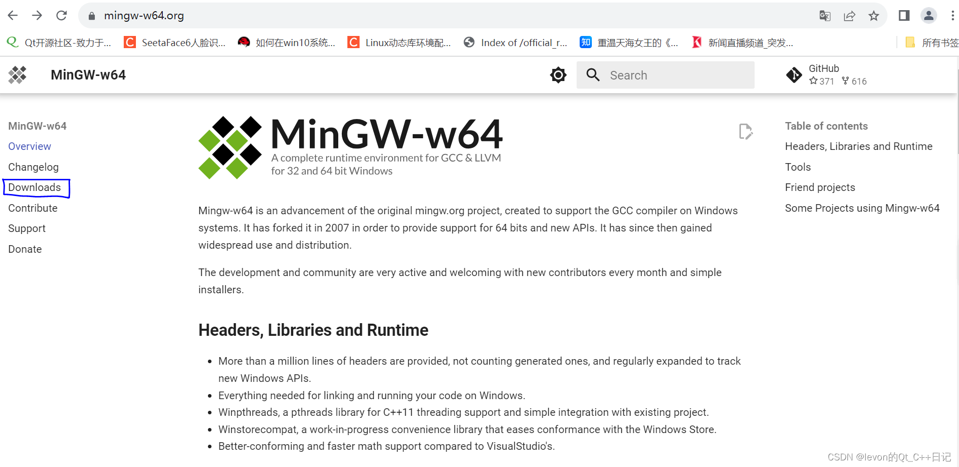 1、在www.mingw-w64.org网页上点击Downloads这个按钮