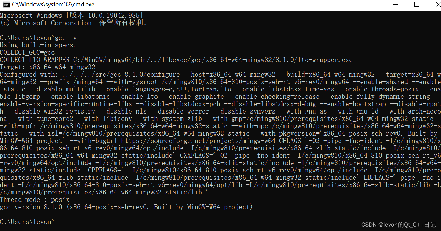 2)输入gcc -v ,出现以下界面,就算安装成功了!