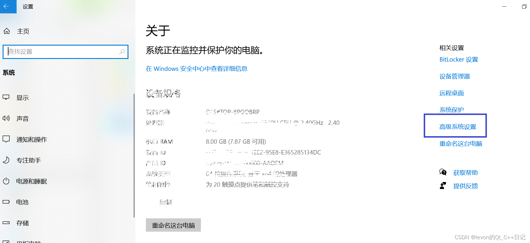 2)点击高级系统设置