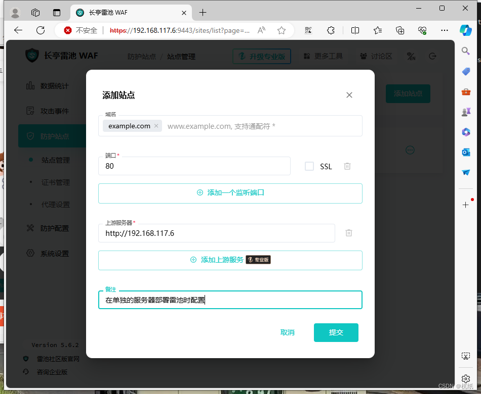 新版本增加单个站点的高级防护配置,支持对单个站点进行额外的防护配置