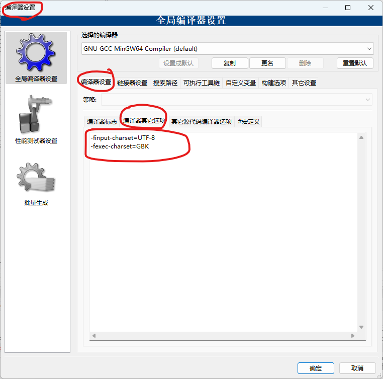 编译器源文件为utf8,执行文件用GBK中文编码。