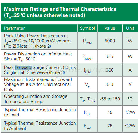 这个时候需要参考TVS的正向导通峰值电流,Ifsm。5.0SMDJ系列的最大正向导通电流为300A。