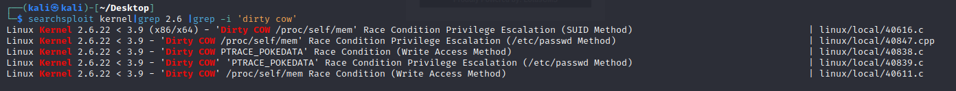 searchsploit kernel|grep 2.6 |grep -i 'dirty cow'