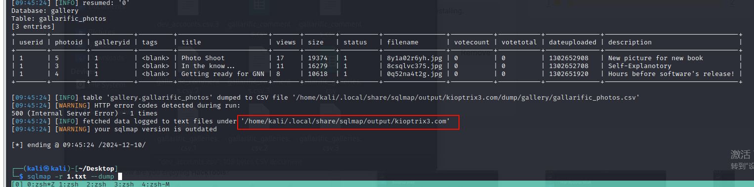 - 直接使用 kali 中 sqlmap 一把梭,将所有数据库下载到本地的路径,在执行结束后会给出保存路径