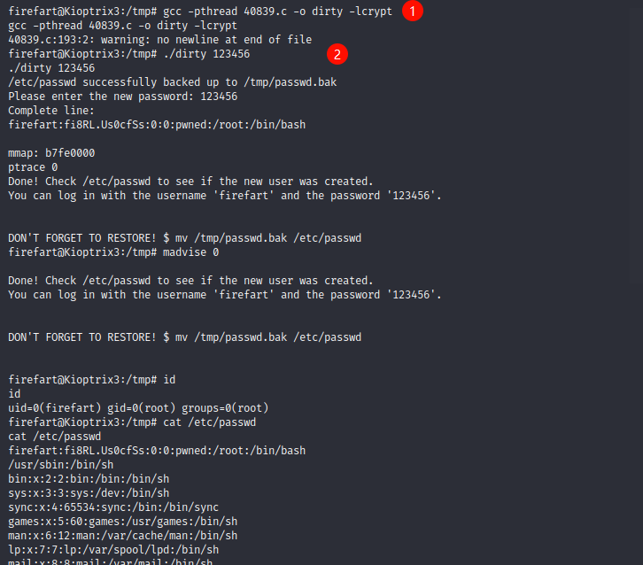 # 执行并加上自己的密码,这里如果使用./dirty,就需要执行以下步骤