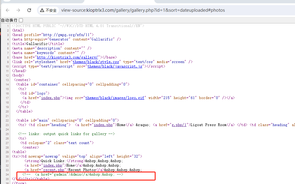 这个文件的账号密码是明文,经过测试发现是 gallery 的管理登录页面,在 index.php 的源码内可以看到
