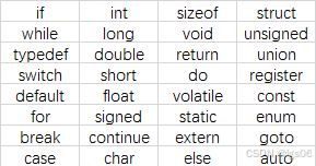 C语言的数据类型包括:整形(short、int、long、long)、字符型(char)、实型或浮点型(单精度浮点 float、双精度浮点 double)、数组类型、结构体类型(struct)等。