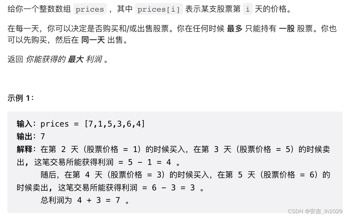 最多只能持有一股股票,也可以先购入在同一天出售,意味着,可以多次买卖该只股票,但是再次购买前必须卖出之前的股票。