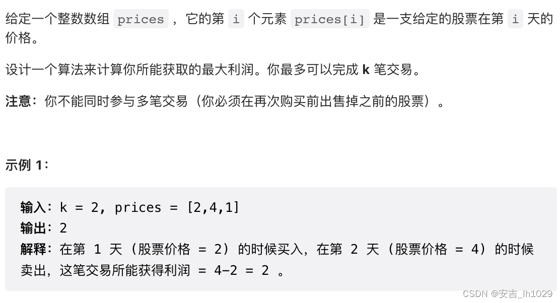 dp[i][k][1] = Math.max(dp[i - 1][k][1], dp[i - 1][k - 1][0] - prices[i])//最大利润就是这俩种情况的最大值