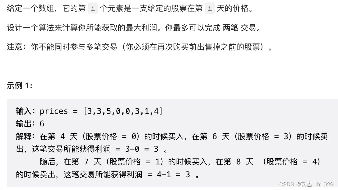 第一维 i 表示下标为 i 的那一天( 具有前缀性质,即考虑了之前天数的交易 );