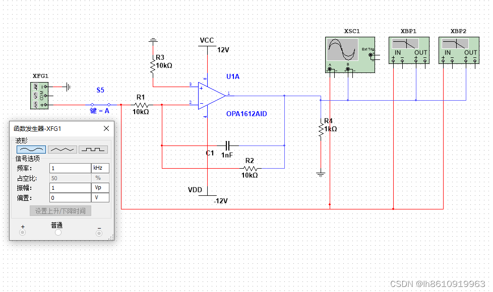 Multisim仿真电路:(六)积分电路 现在回想一下前面运放的各种常用电路,其实主要都是看反馈回路上的结点电流与输出电压的关系,前面反馈回路上都是电阻,都是线性的,那么如果像设计一个积分电路,那么必然输出电压要与节点电流是一个积分的关系,很明显电容是这样的关系,并且这个充电的电流和电容本身没关系。可以看到得到的结果和理论比较一致,既然是和RC电路有关,必然是和RC的值有关,电阻可以限制充电电流,电容大小影响充电时间,具体的关系可以看看模电,是一个和RC有关的积分函数。以上只是比较浅薄的认识,肯定会有盲点,欢迎看到的各位指出来,我太想进步了!