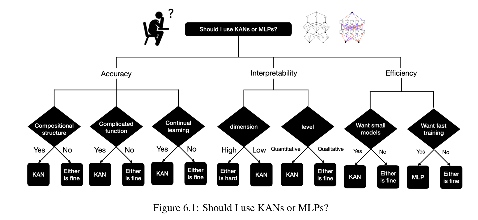 KAN最大的瓶颈在于训练速度慢。在参数数量相同的情况下,KAN通常比MLP慢10倍,这需要在未来加以改善。
