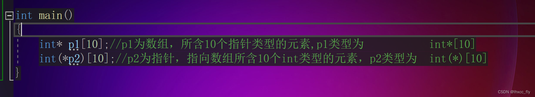 int(*p[])(类型)数组存放数据类型为int(*)(类型)p[]为数组