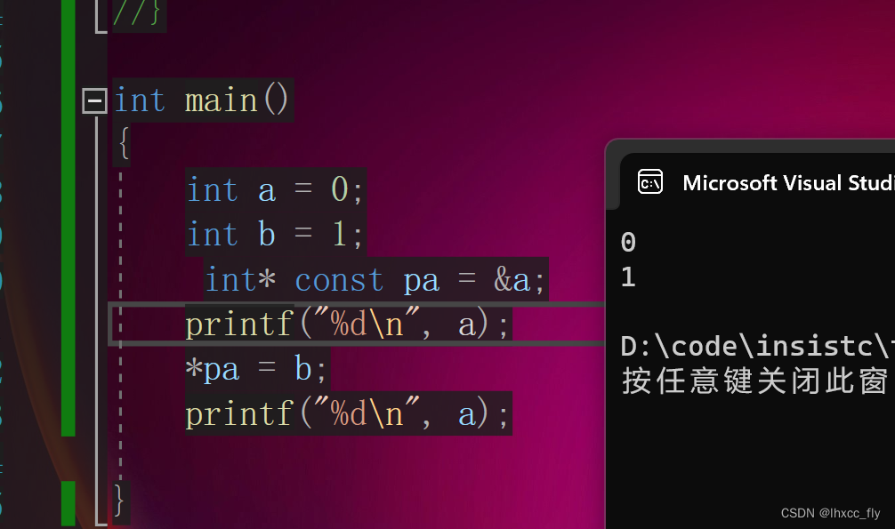 const放在*的右边限制p(为p的地址,*p不受限制)【 int * const a】