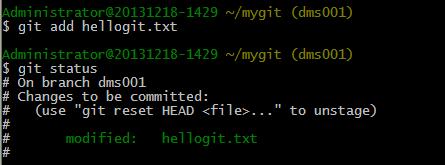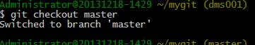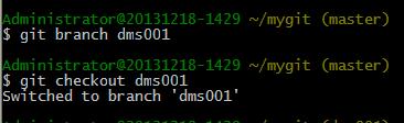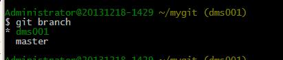 然后咱们可以通过git branch来查看当前分支是不是在dms001上(当然也可以直接使用git checkout -b dms001来创建并切换至dms001分支):