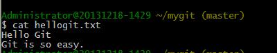 创建好分支后,咱们再来对之前hellogit.txt文件做做修改,先cat hellogit.txt看看里面的内容: