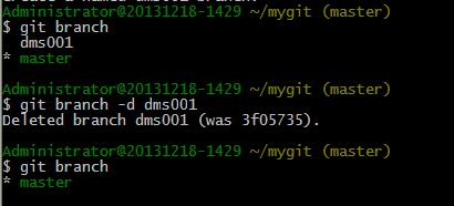 好了,既然已经merge好了,那么我们就可以放心的删除分支dms001了。删除命令如下: