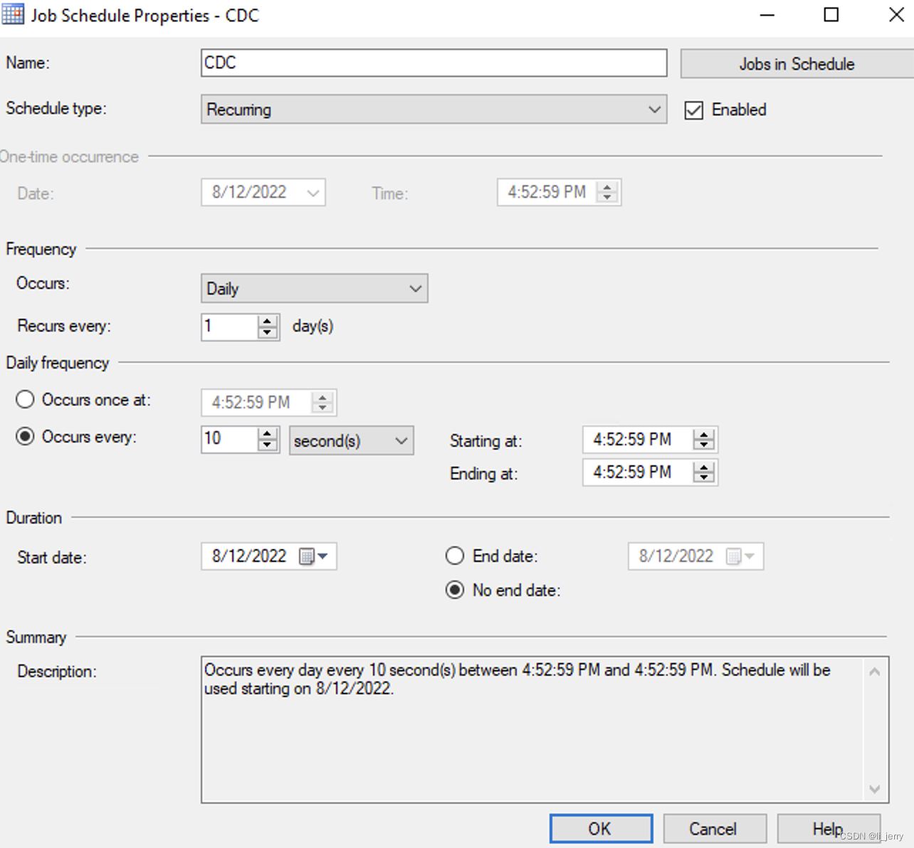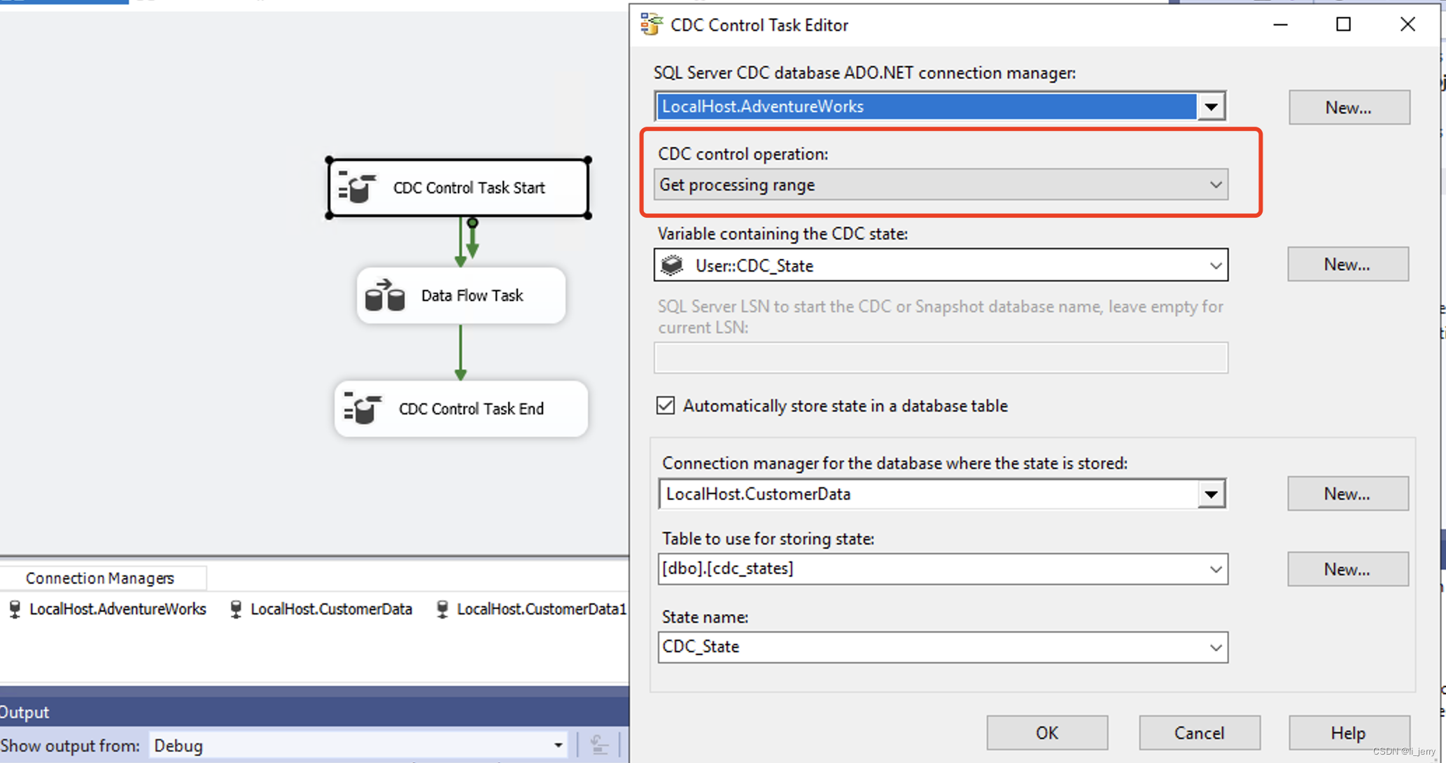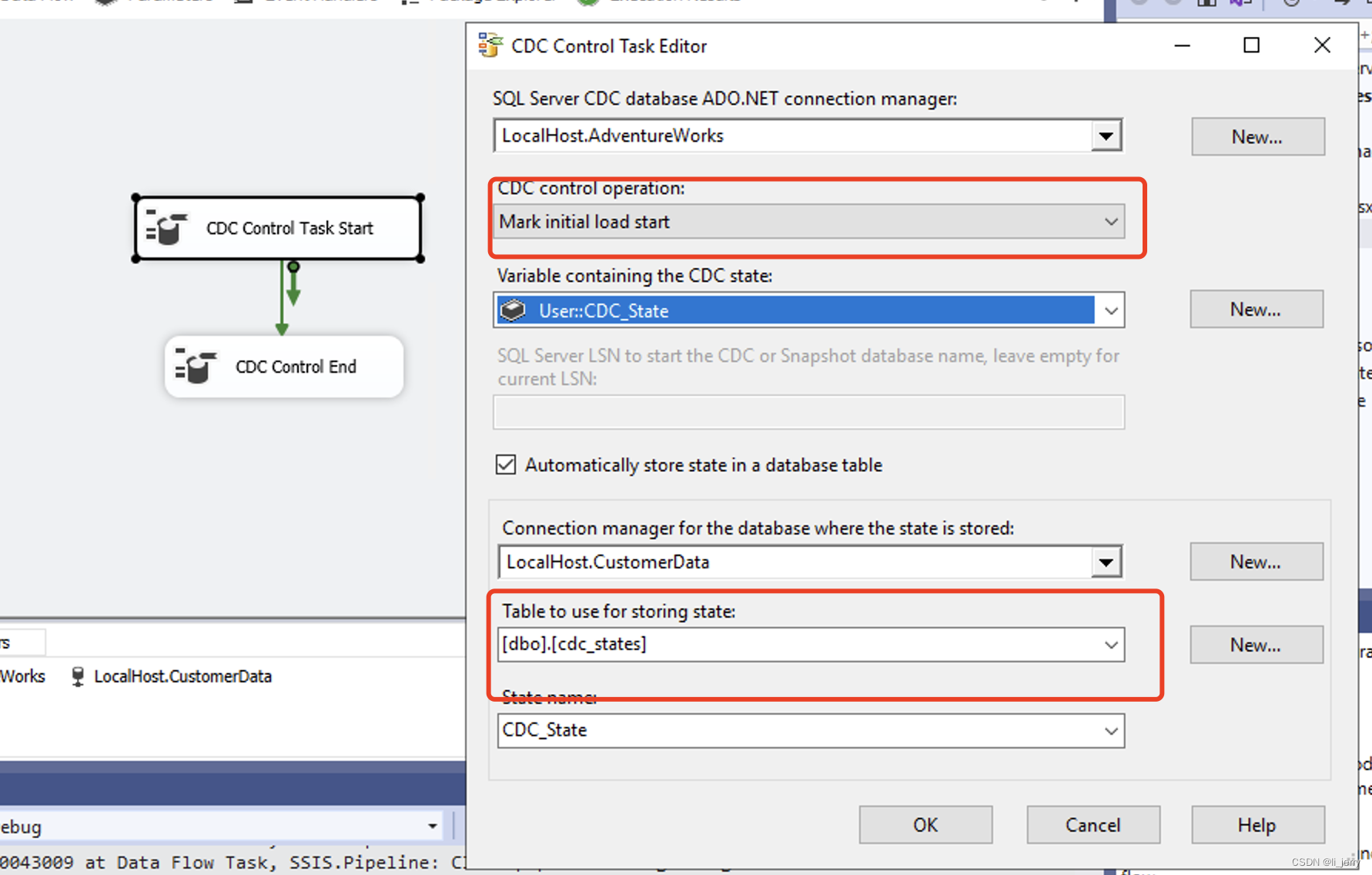 在CDC Control Task Start中配置如下图,需要注意的点: