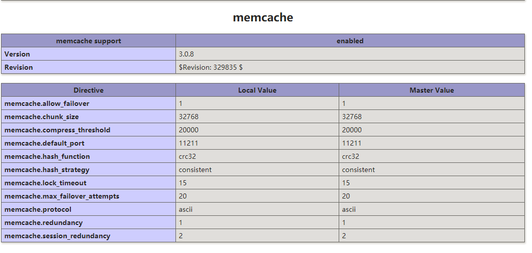 然后打开输出phpinfo,查看是否存在mamcache这个扩展项。