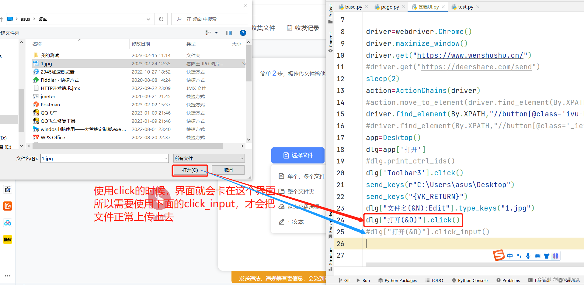 问题:pywinauto实现上传文件,使用click()点击打开按钮,界面无反应