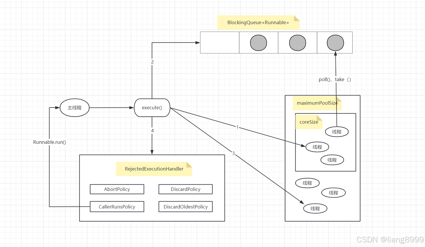 ThreadPoolExecutor 采用上述步骤的设计思路是为了执行execute()方法时,尽量避免