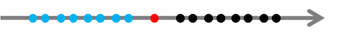 在一维空间,也就是一个坐标轴上面,要分开两个可以分开的点集合,我们只需要找到一个点,如图1: