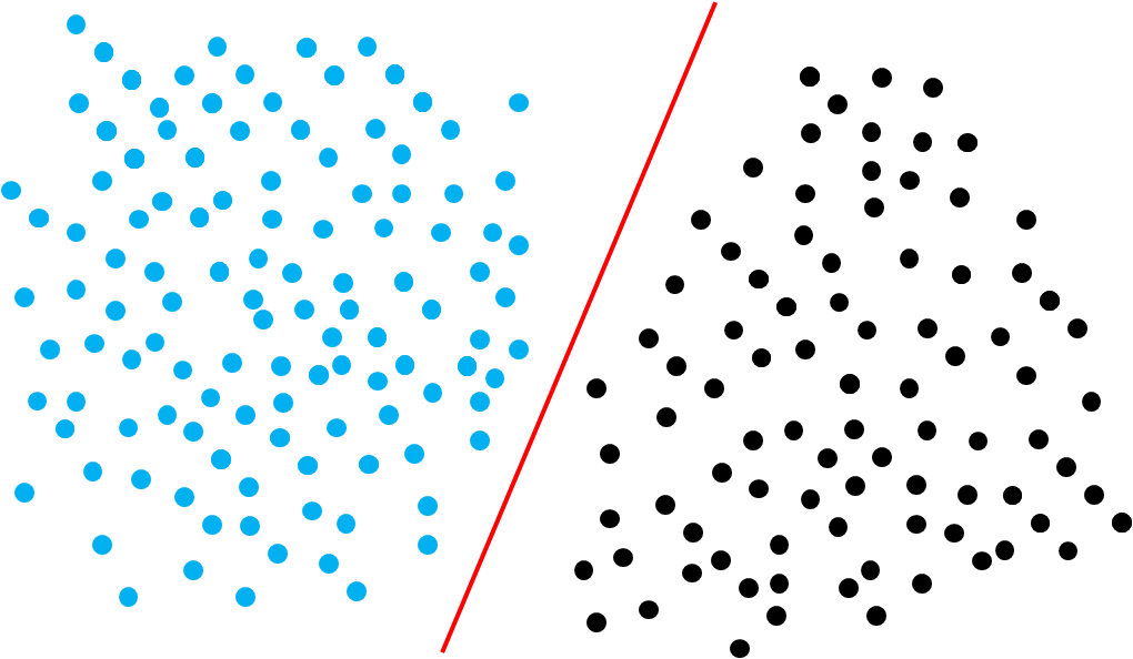 对于一个待分类类别,为了自己的类别能准确地分类,都希望分类直线到自己的距离大些,当有两类的时候,就会形成相互竞争,最后的竞争结果就是让这条分类直线,到两个类别的距离相等,在生活中,通常也是这样达到一种平衡状态的。