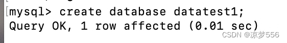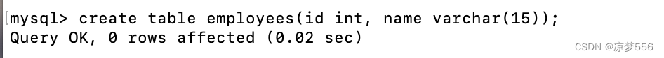5. 创建表 `create table 表名(id(字段名) int(字段类型), name varchar(15)); `