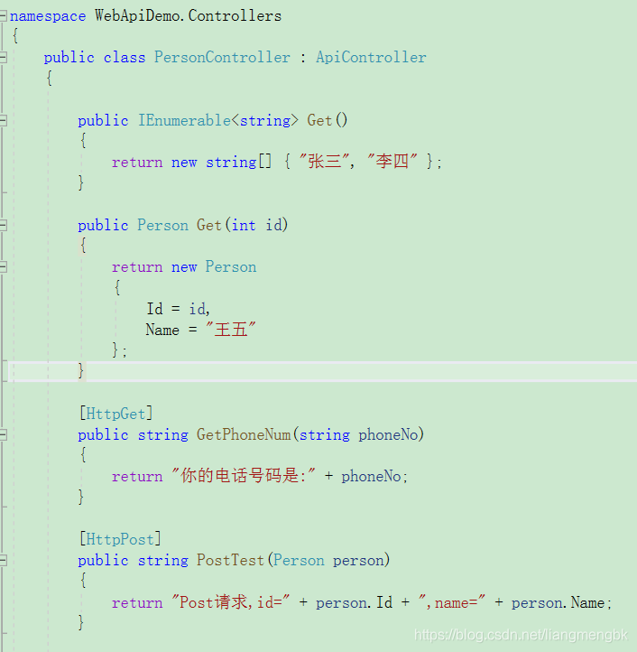 关于post请求,这里有个地方需要注意,api接口方法中,接收参数的地方一定要用模型对象(类)来接收,如果用变量(string Id,string Name),这样写会出问题,而且有很多坑。