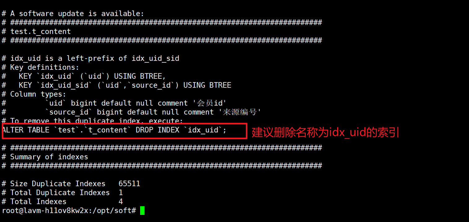 工具给出的建议是删除冗余索引。