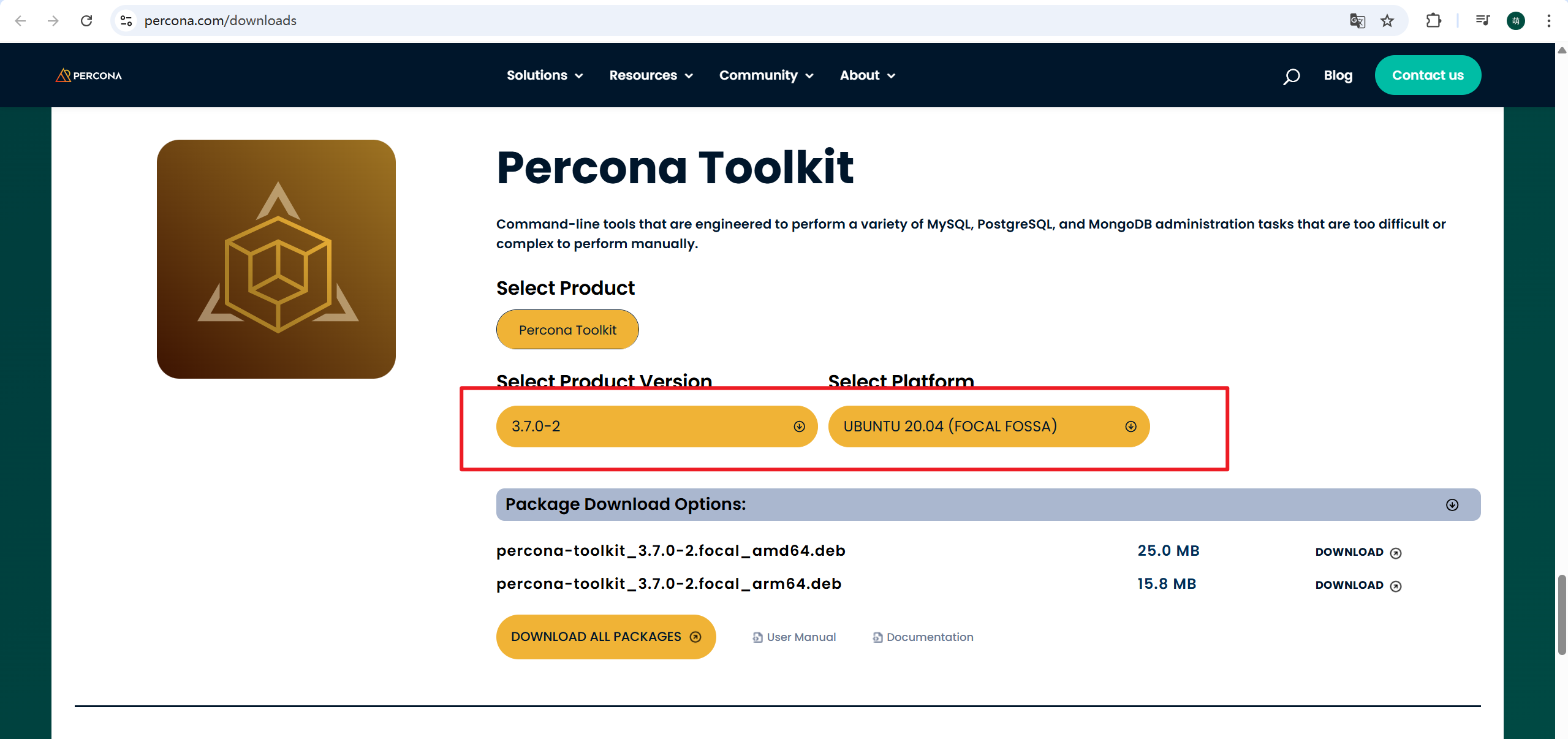打开页面后,下拉,找到Percona Toolkit