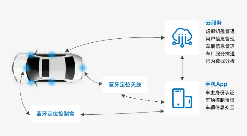 4、只需手机跟车辆完成双向身份认证,即可实现用手机解锁车门、启动发动机及获取车辆状态信息等