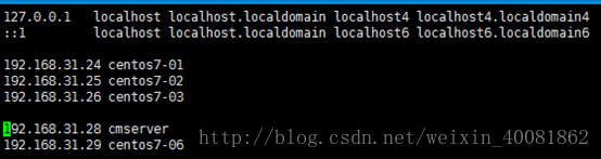cmserver | 1 | 192.168.31.28 | 作为cloudera Server | 内存:16G CPU:4核 硬盘:100G | 可支持虚拟环境 | ||