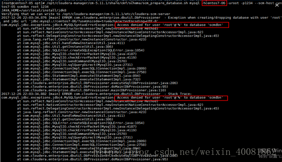 /opt/cloudera-manager/cm-5.11.1/share/cmf/schema/scm_prepare_database.shmysql –hcentos7-06 -uroot -p1234 --scm-host cmserver scmdbn root 1234