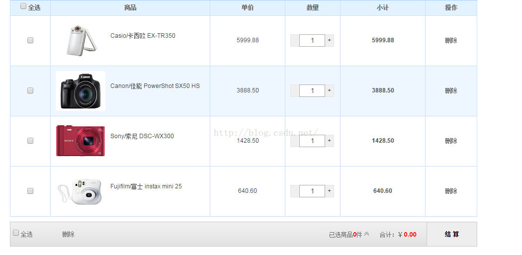 今天用HTML和JS实现以下购物车,然后再用Angualrjs再去实现一下购物车的前端实现。