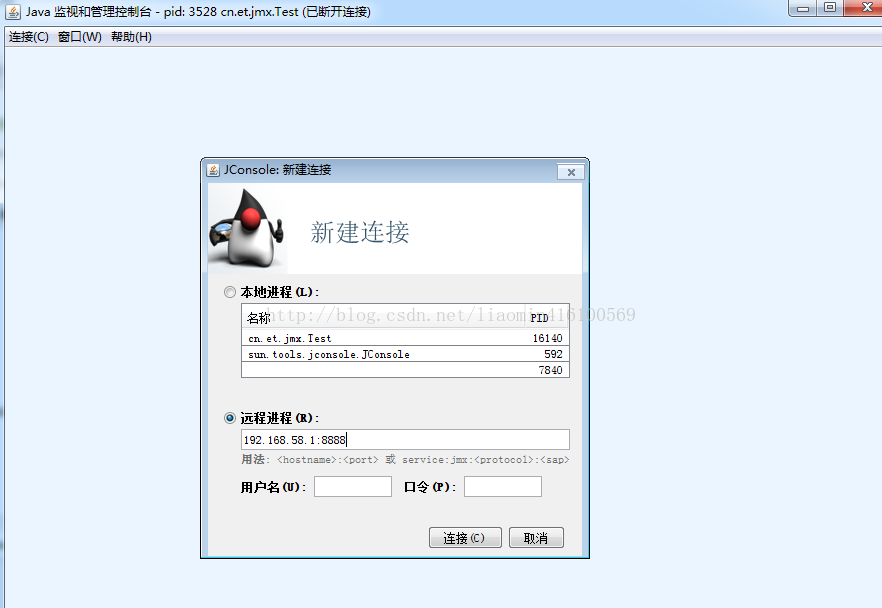 打开JAVA_HOME/bin/jconsole.exe找到本地类的选项 点击连接