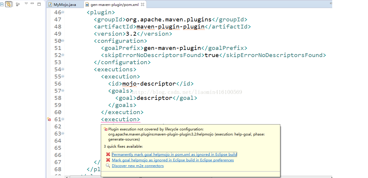 使用eclipse项目时 会出现两个编译异常 mojo-descriptor和helpmojo 这里可以忽略检查这个异常 不影响插件的编译和安装