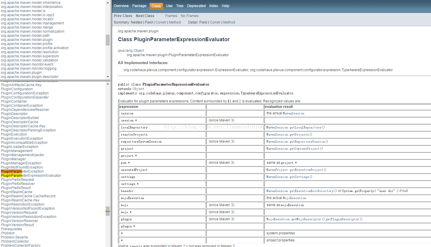 这里插件参数的el表达式用法可以查看http://maven.apache.org/ref/3.5.0/apidocs/index.html