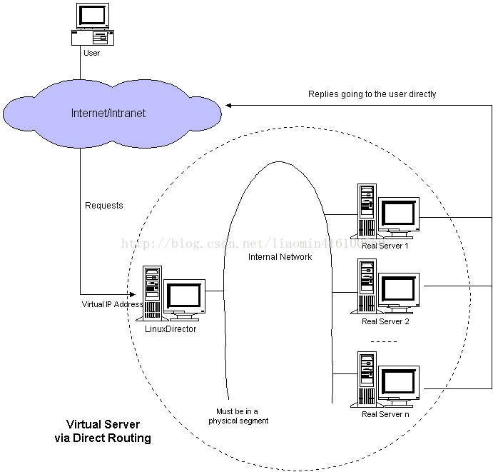 由RealServer响应给客户端 由于socket长连接 客户端与负载均衡器发送的请求和响应必须是相对的 如果实现RealServer直接响应 必须在RealServer响应