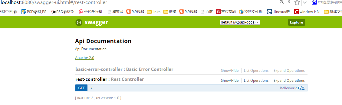 其他api注解参考 官网 访问swagger-ui界面(http://localhost:8080/swagger-ui.html#/rest-controller)