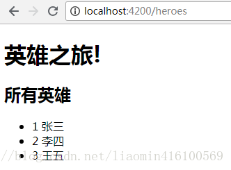 尝试使用 ng serve启动 访问 http://localhost:4200/ 为空白 http://localhost:4200/heroes显示英雄列表