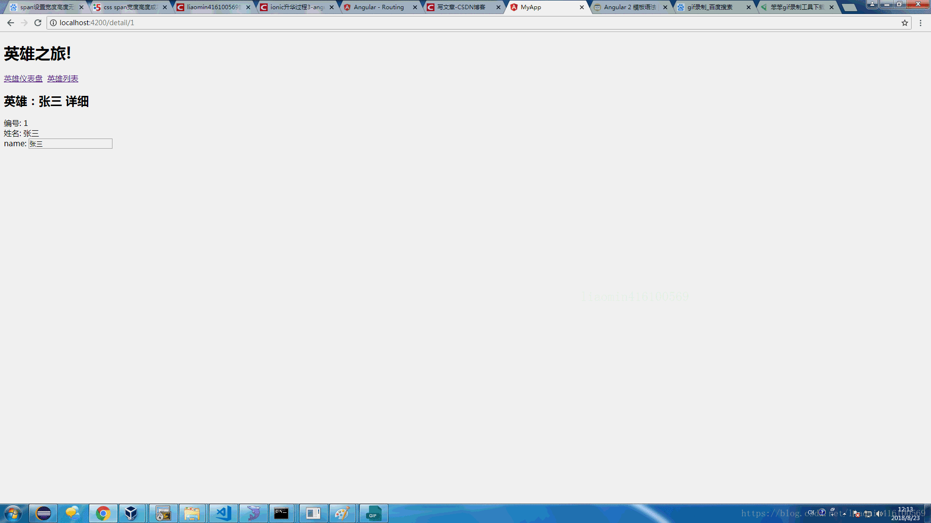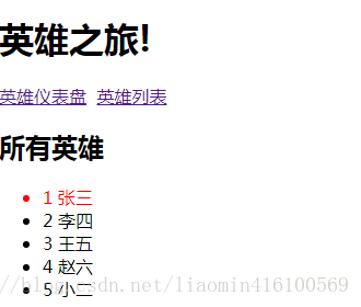 应用实现描述:首页默认进行仪表盘,点击仪表盘进入仪表盘,点击英雄列表进入列表,点击列表中或者仪表盘的英雄编辑具体英雄,英雄编辑页面返回跳转到之前的页面