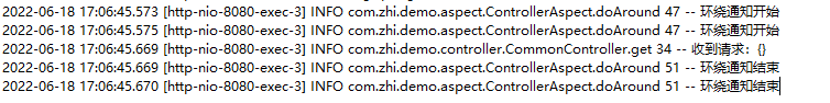 2、日志输出结果,被拦截的方法只执行了一次,但环绕通知中的方法却执行了2次: