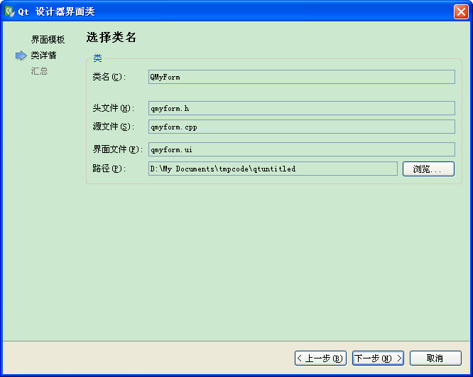 1、用Qt Creator新建一个自定义Widget,类名自定义为“QMyForm”。